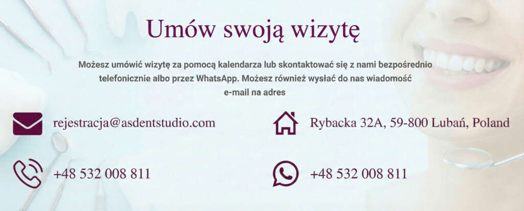 W AsDent Studio oferujemy wysokiej jakości opiekę stomatologiczną w spokojnej i komfortowej atmosferze. Łączymy nowoczesne technologie z delikatnym podejściem, aby każdy pacjent czuł się pewnie, zrelaksowany i odpowiednio zaopiekowany.